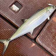 2回目は放流後に仲間たちが釣り上げている最中に撮影していて、うっかり水面を漂わせていたアジに食いついた青物。比較的早く釣れた。4尾目はカツオで水面を泳いでいる青を釣り上げた。見ながら釣り上げた。いきなり2尾が競走するように食い合って1尾ヒット。2分位で上がってきた。