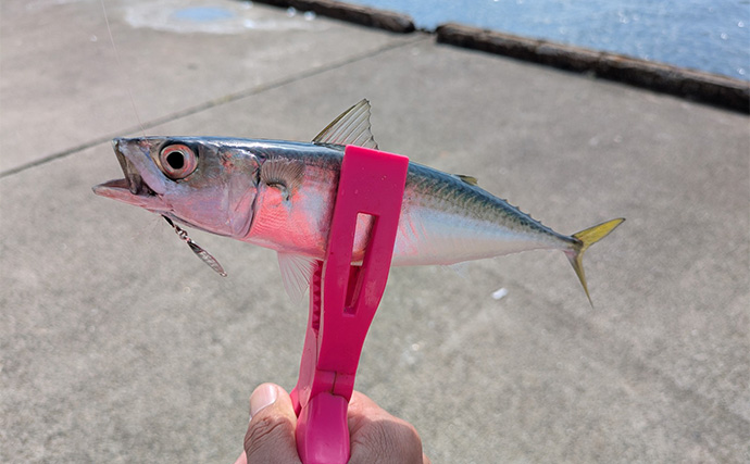 ここでライトソルトゲームで魚子メタルを投げていると、再びサバがヒットしました。これを見て、その方はサヨリからサビキに切り替え、アジやサバを狙い始めました。