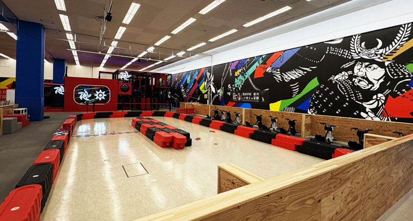 電動カートでドリフト走行が楽しめる「サーキットエリア」のほか、プロジェクターに出現するキャラクターを刀や手裏剣(ボール)で倒して競う「忍者トレーニング」などのアトラクションが楽しめます。