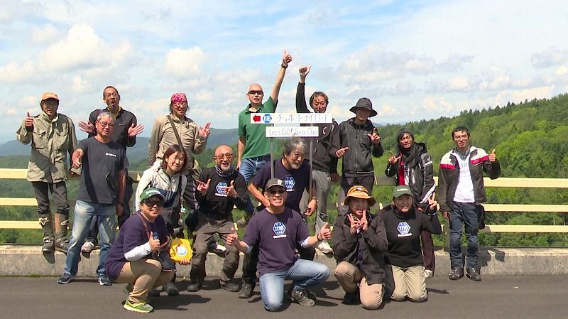 「ちゃんと着ていますよ!」と話すライダーの皆さんは、道道の標識がプリントされた、おそろいのTシャツを着ていました。