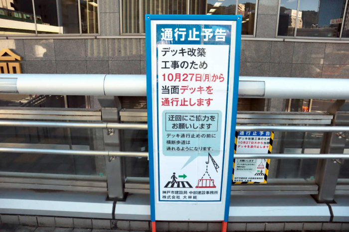 三宮『ミント神戸』へ向かうデッキなどが通行止めに!期間は10月27日からおよそ2年間 神戸市