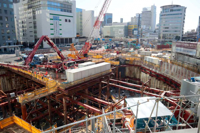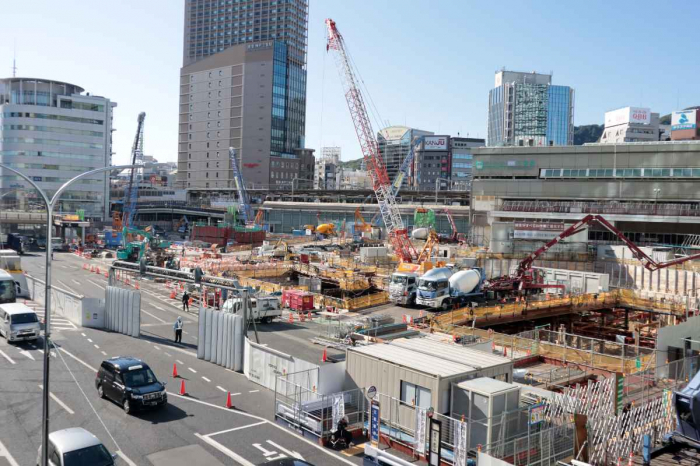 現在、JR三ノ宮駅周辺では新駅ビルの建設や新たなバスターミナルの整備に向けた工事が進められています。『ミント神戸』を降りるエスカレーターなどからは、その様子を確認することができます。