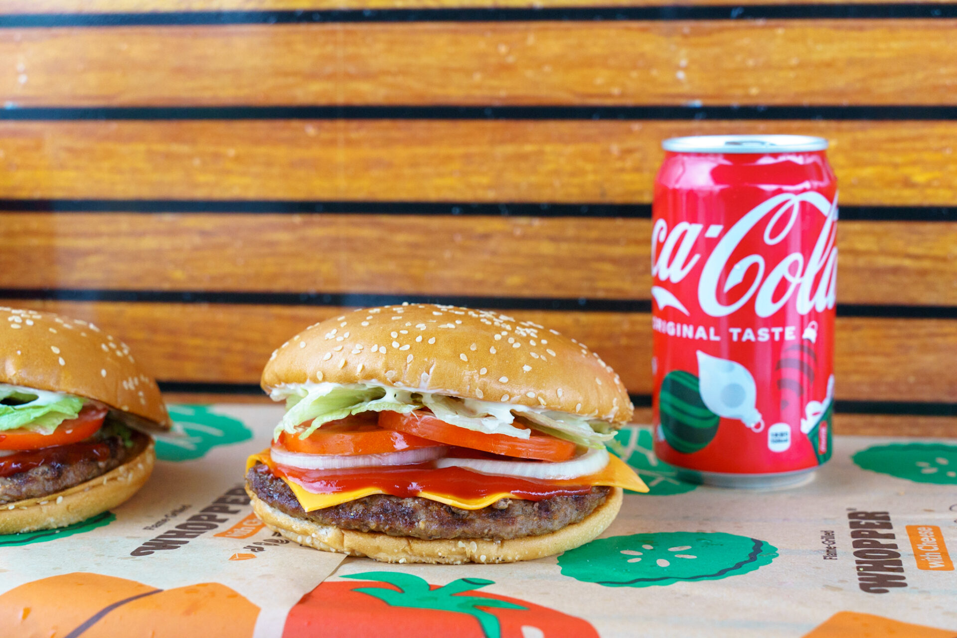 直火焼きの100%ビーフを使用したバーガーキングの看板商品『ワッパー®』を、よく冷えたコーラと一緒に楽しむことができます。
