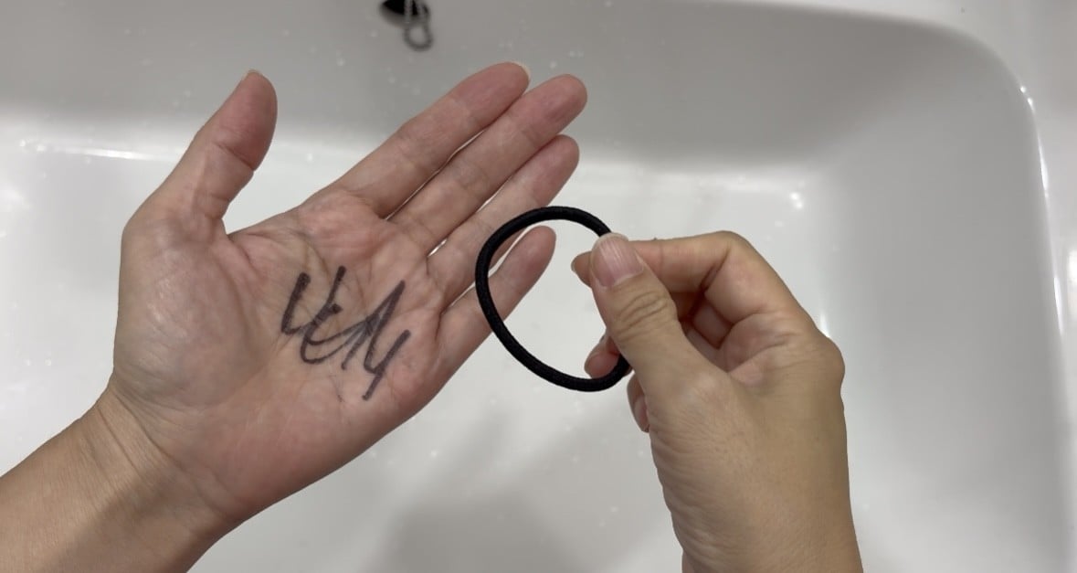 手に油性マジックのインクがついてしまい、石けんだけではなかなか落ちない……。そんな経験はありませんか? ここでも役立つのがヘアゴムです。