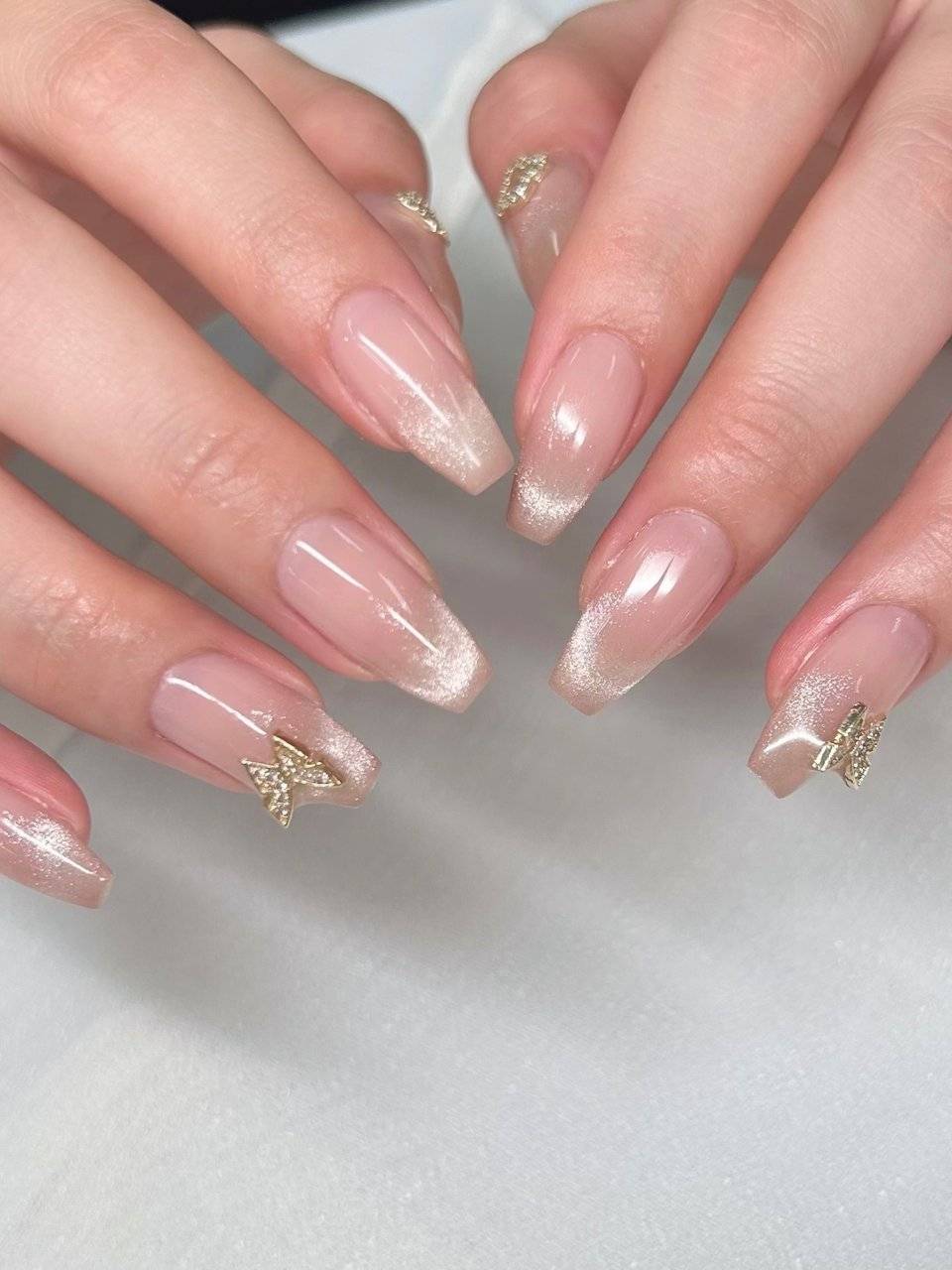 バタフライパーツを飾って、2025年人気のワンホンネイルにチャレンジしてみて。