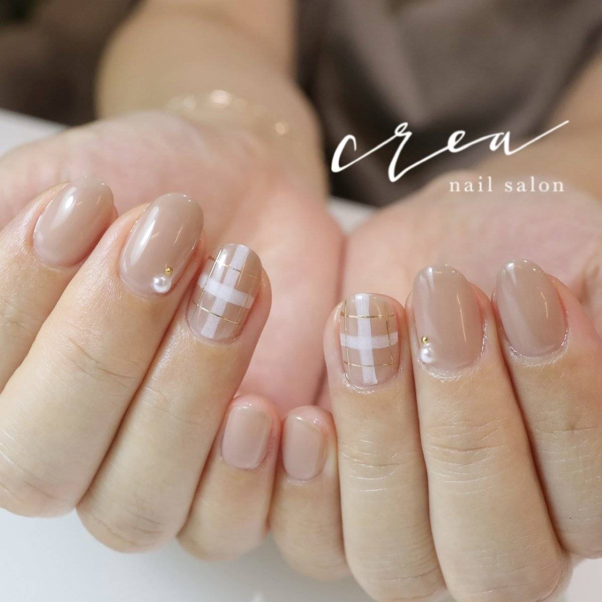 【初冬編】おすすめのくすみベージュネイル▶︎ワンポイントにチェック柄ネイル