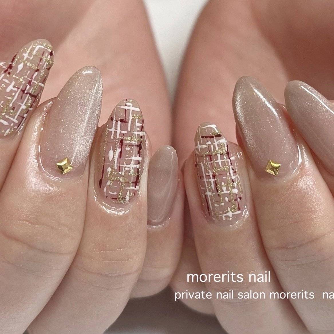 シーズンムードを高めるなら、ツイード柄ネイルもチェックしておきたいところです♡