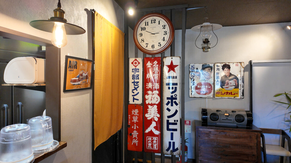 店内の昭和レトロな雰囲気は、「カレーのランプ」という店名とも相性が良く、ほっと落ち着く空気が流れています。食券機で気軽に注文できるスタイルも訪れやすく、女性ひとりでも入りやすいのが魅力。