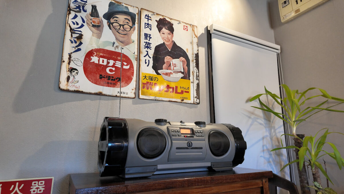 お店の扉を開けると、昭和レトロな看板やポスターが壁を飾っており、どこか懐かしさが漂う空間。光量を抑えた電球色の照明が優しく広がり、思わず長居したくなる穏やかな時間が流れています。席はカウンター6席とテーブル3卓ほどで、ひとりでも気軽に入りやすい雰囲気です。