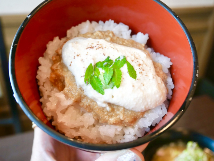 さらに嬉しいのが、セットで付いてくる「担々ごはん」。たっぷりの胡麻を使ったそぼろに、自家製豆腐と塩麹を合わせたオリジナルの一品で、香ばしいゴマと山椒の香りがふんわりと立ちのぼります。ラーメンのスープを飲み干す前に、このご飯にスープをかけて食べるのもおすすめと教えていただきました。