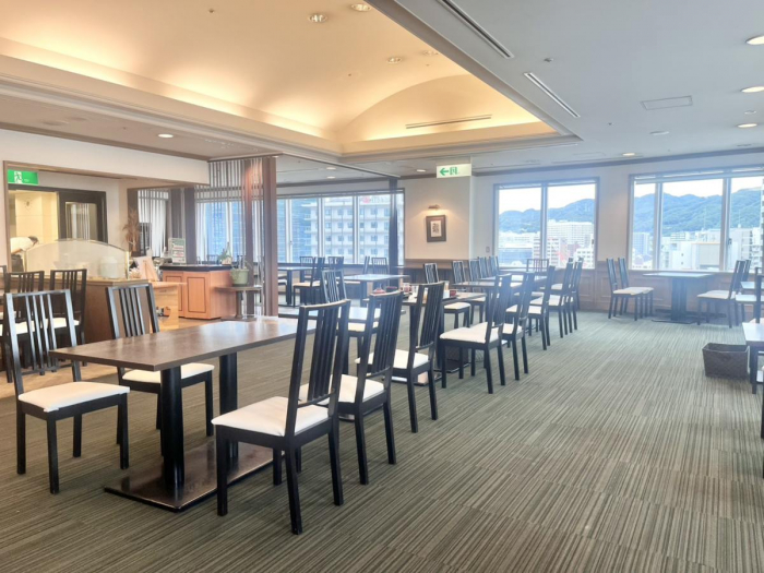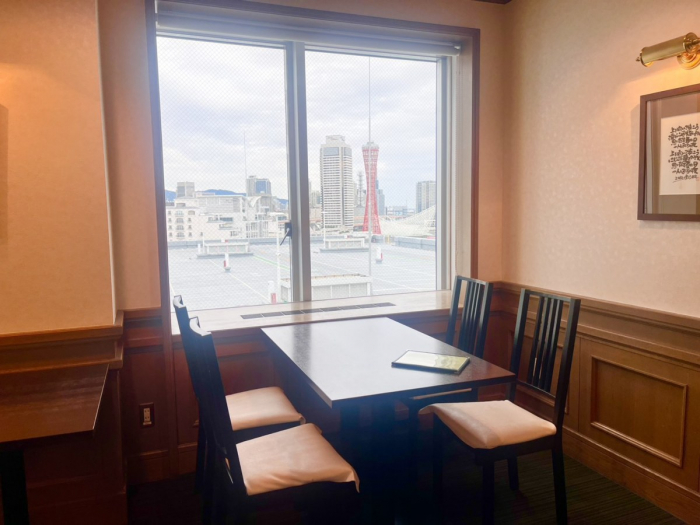 窓際の席からは、六甲山や神戸の港町の景色を楽しむことができます。
