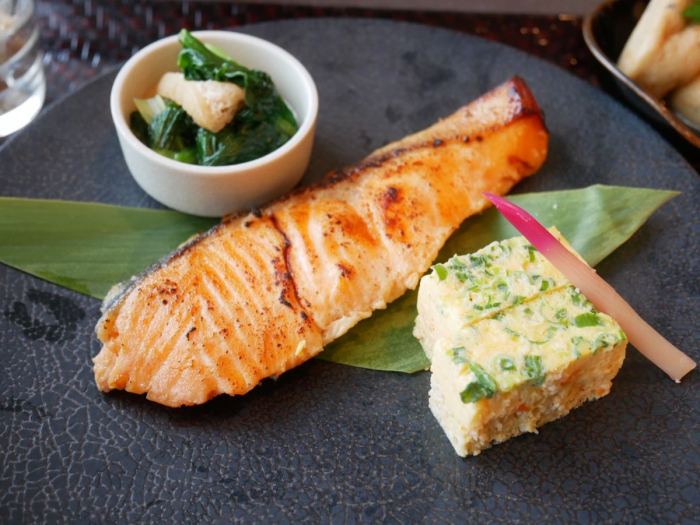 この日のメインは「鮭の西京焼き」。甘みのある西京味噌が鮭の旨味をやさしく包み込んだ、ご飯がどんどん進む味わい。ちなみにこの日のお米は三田市産「ヒノヒカリ」でした。