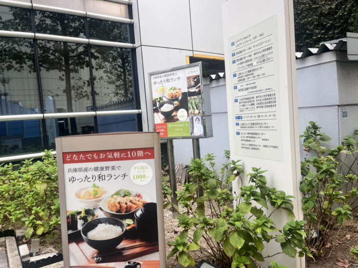 JR神戸駅から神戸ハーバーランドumieの方面へ歩いていると、『神戸市産業振興センター』(神戸市中央区)の下で美味しそうなランチの写真がのった看板を発見!「兵庫県産の健康野菜でゆったり和ランチ」の文字が気になり、行ってみることにしました。