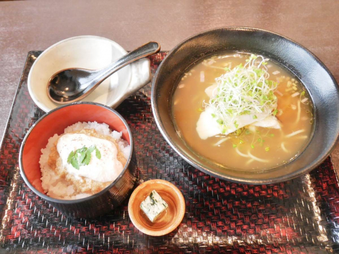 同ラーメンはお店で人気の“明石鯛のひつまぶし”のお出汁をベースに作られています。明石鯛の旨味がたっぷり溶け込んだスープに、秘伝の醤油だれでコクと深みをプラス。