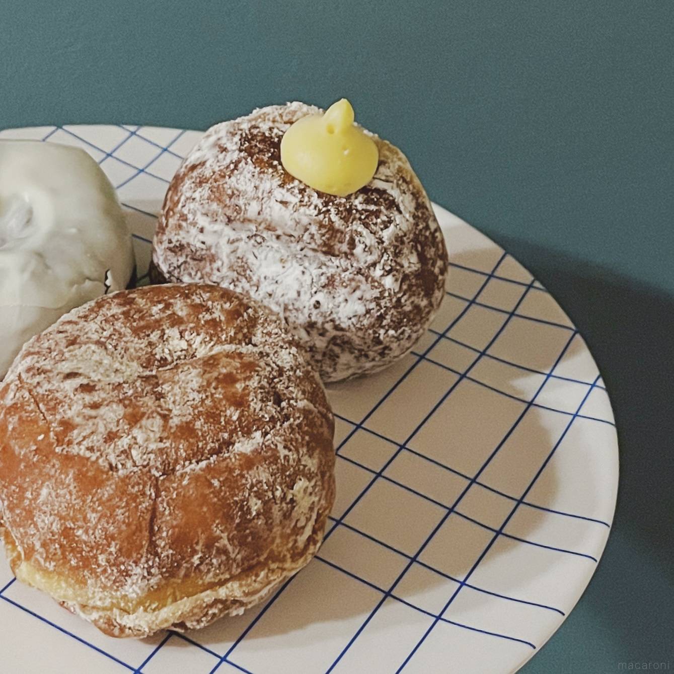 ドーナツはふわふわもっちりとした生地に、たっぷりのクリームが入ったボリューミーなタイプ。黄色のストライプのパッケージに入っているのもとってもかわいいです♪ クリーム入りの甘いタイプから、ハムチーズなどのお食事系まで幅広く楽しめますよ。