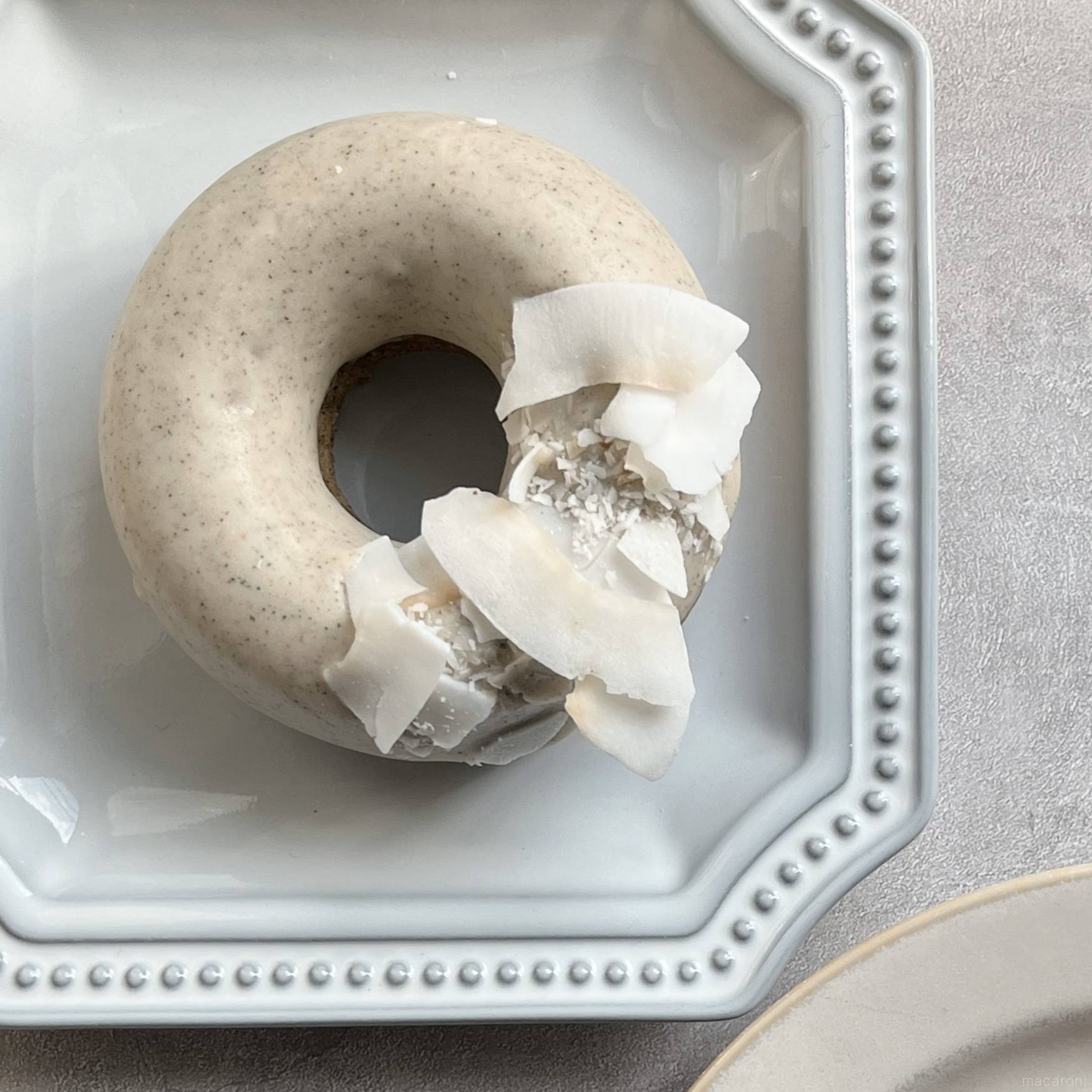 バニラ&ローストココナッツはふわふわもっちりのブリオッシュドーナツ生地と、バニラ香るグレーズに香ばしいココナッツのシャリシャリ感が楽しめますよ。