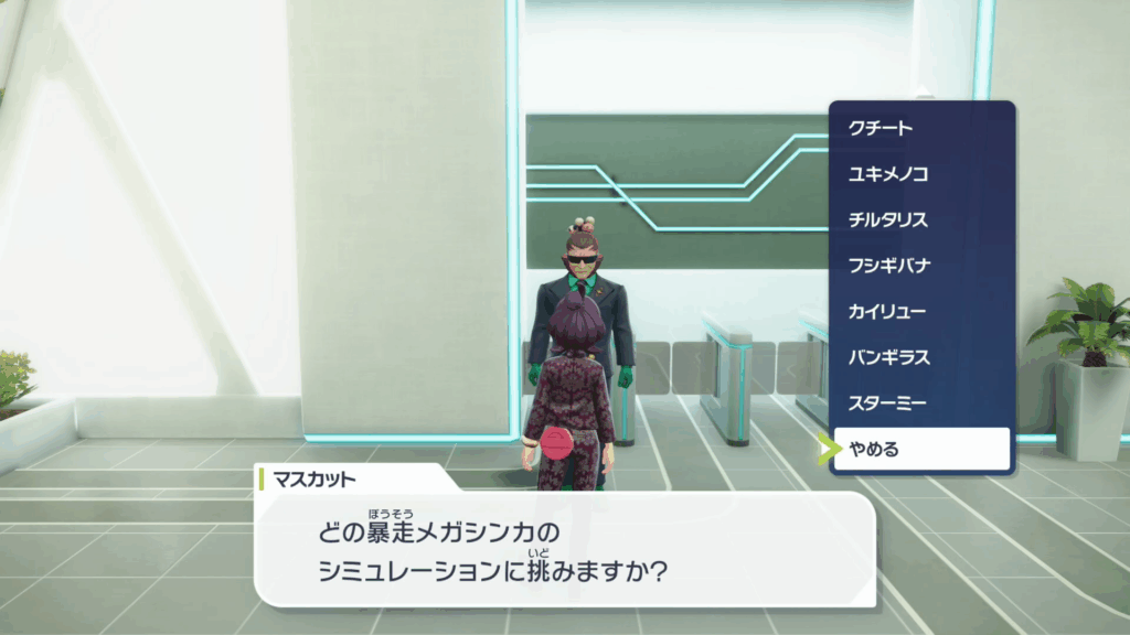 この暴走シミュレーターに挑戦すると、暴走メガシンカポケモンとの再戦が可能になります。