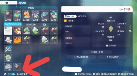 特に、今回はボックス操作中にZLを押すと「まとめて逃がす」ということができるようになります。