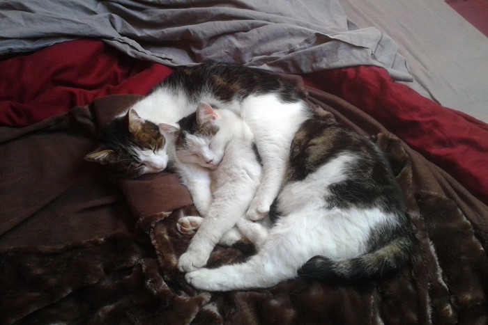 しかし、猫は本来、狩りは単独で行う一方で、子育てや寒さ対策の際には母子や兄弟で身を寄せ合う習性を持っていました。安全とはいえない環境下では、複数で眠るほうが外敵に気づきやすく、防衛面でも有利だったと考えられます。