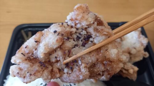 どれも食べたい欲張りライター、しかし胃の容量は有限なので、旨塩・醤油・シソ3種の味が選べる「ミックス唐揚げ弁当」(大盛)を頼みました。