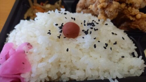 ちなみに10/31までは大盛無料です。 まだまだお米が高いこのご時世、うれしいサービス! そしてこちらが旨塩2個・醤油1個・シソ1個のミックス弁当です。