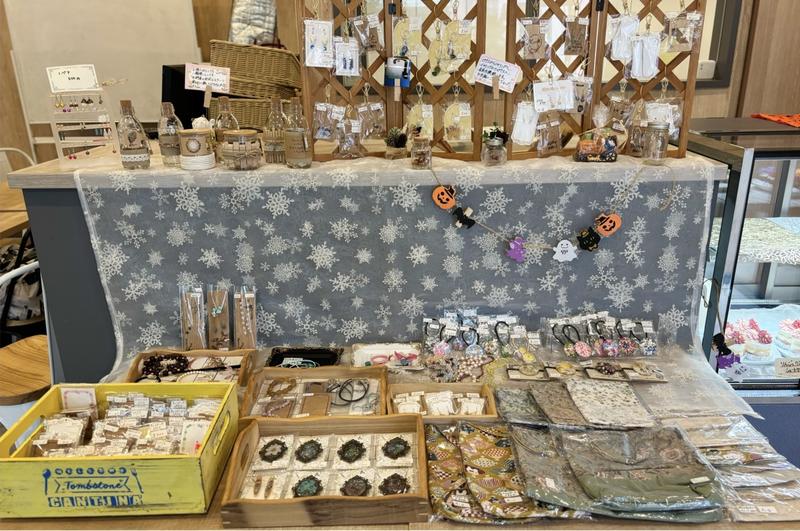 ショーケース横には、店主のお母さまが友人と一緒に制作しているハンドメイドアクセサリーの販売コーナーも。気になる方はぜひチェックしてみてください。