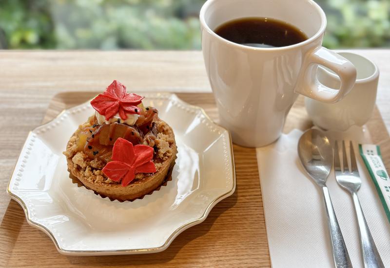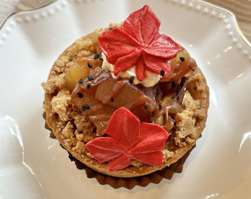 新作の『大学芋風タルト』を店内でいただきました。まずは目で見て楽しみます。目の前に訪れた小さな秋。