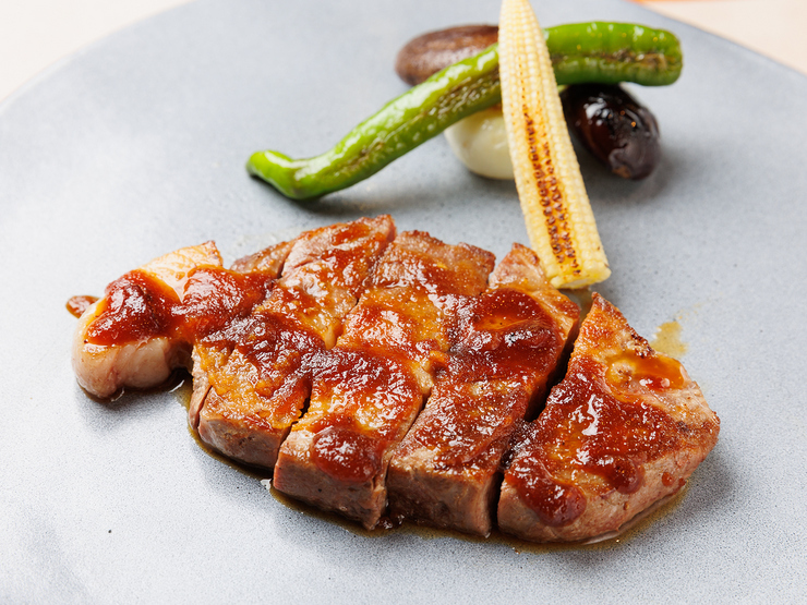 目にも美しい粋な料理でもてなしてくれるのが、南国市の御免駅から徒歩10分の【日本料理 しば】。高知県産の生姜をたっぷり使った四万十ポークの生姜鍋や、四万十鶏の炭火焼きといった、高知と季節の恵みを活かした料理をコースで堪能できます。夜のコース内容は毎月変更されるので、訪れる時期の旬の味と出合えます。