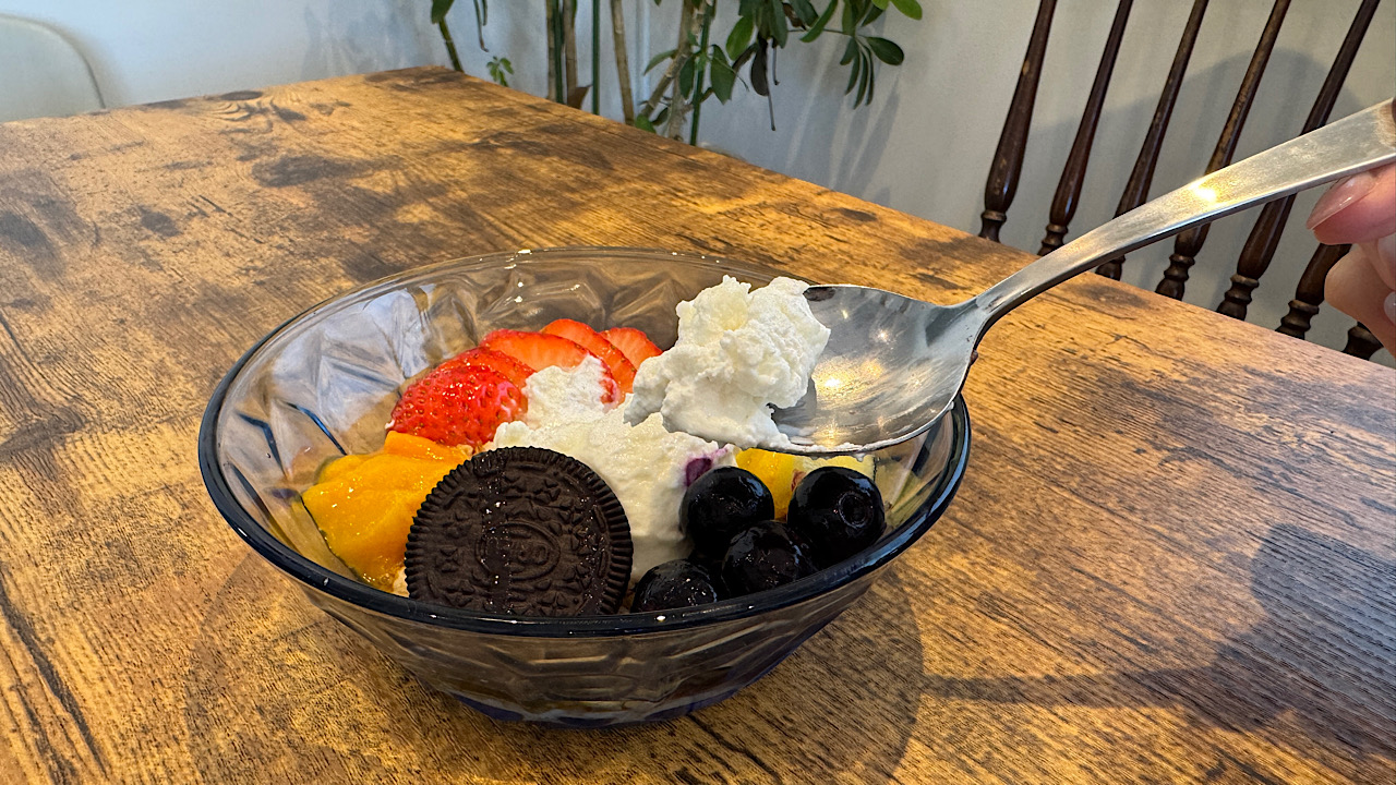 フルーツは5種類(イチゴ、バナナ、ブルーベリー、マンゴー、パイナップル)から4種類。