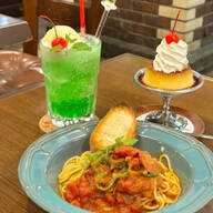 食後には、思わず目を引く、まんまるの見た目が印象的な「林檎のケーキ」をチョイス。中には甘く煮たりんごがたっぷり隠れていて、しっとりとした生地との相性も抜群。愛らしさと驚きが詰まった一品です。