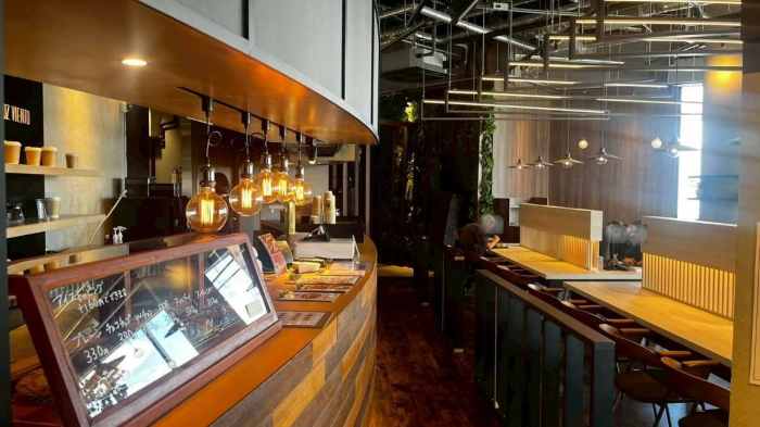 入店後すぐのカウンターで注文と会計を済ませるフードコートスタイル。Wi-Fiも完備され、周囲に気兼ねすることなく、自分の時間を心地よく過ごせるのも魅力のひとつです。