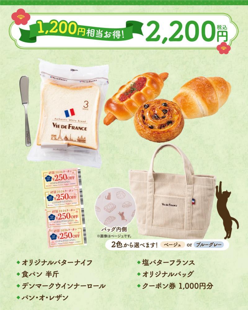ヴィ・ド・フランス(VIE DE FRANCE)は、2026年1月1日から7日まで、数量限定で「福袋2026」の販売。予約が25年12月1日から始まっています。