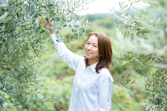 市川和代さん。一般社団法人 日本オリーブオイルソムリエ協会が認定するオリーブオイルソムリエ。海外のオリーブ畑にも頻繁に足を運び、栽培やブレンドを指揮する。
