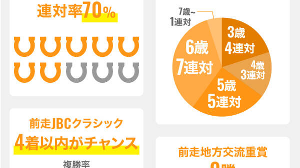 世代トップクラスの実力を持つ。勝率50%、複勝率75%の好データにも該当。