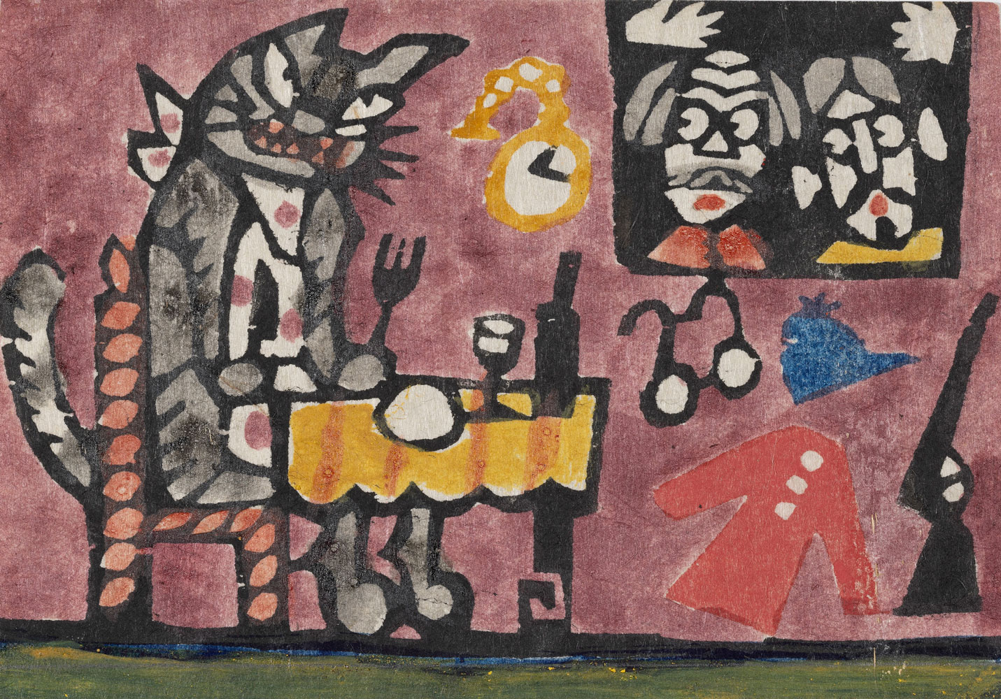 柳宗悦(やなぎむねよし)らによる民藝運動に出会い、芹沢銈介(せりざわけいすけ)のもとで染色家としての道を歩みはじめた柚木は、挿絵やコラージュなどジャンルの垣根を超え、創作世界を豊かに広げていった。