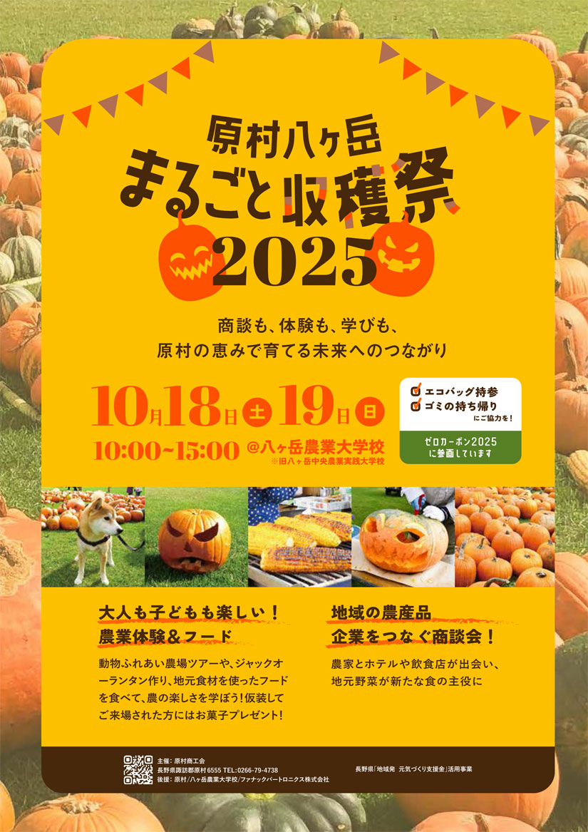 10/18(土)10/19(日)6年ぶりに復活『原村八ヶ岳まるごと収穫祭2025』地元グルメが並ぶマルシェ&特大かぼちゃでジャックオーランタン作り!@長野県 原村