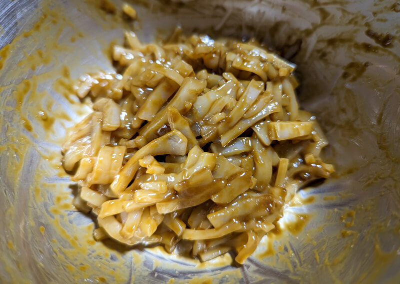 スルメイカが釣れたらぜひ作りたい一品が「塩辛」。スルメイカはワタ(肝)が大きく旨味が濃厚なので、塩辛作りにもってこいなんです。
