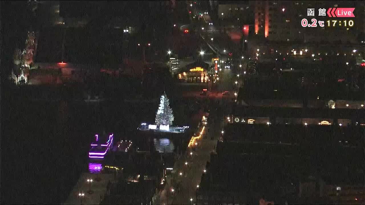 函館で行われているクリスマスファンタジー。ツリーがくっきり見えています。