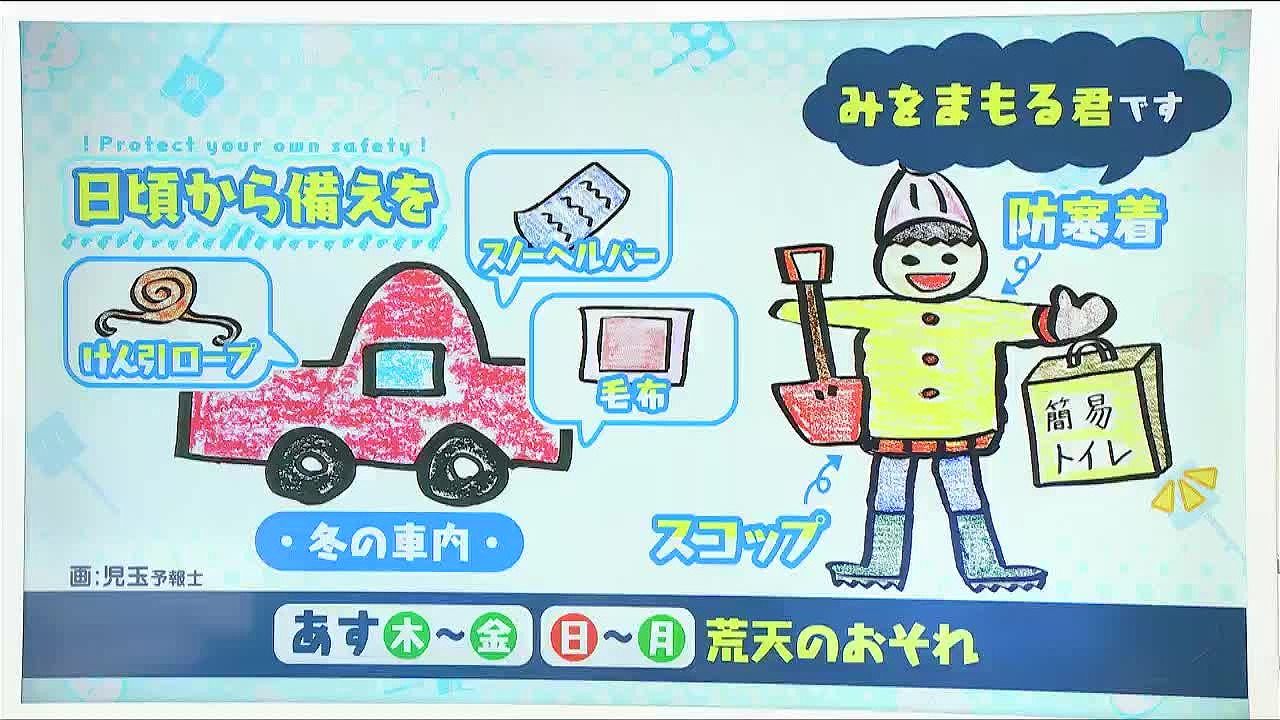 あす11日(木)だけでなく、金曜日にかけてと、日曜から月曜も荒れた天気になりそうです。家の中での災害対策はもちろんですが、車にも除雪用のスコップや雪にはまって動けなくなった時のためのスノーヘルパーやけん引ロープ、暖をとれる毛布や防寒着。そして、簡易トイレは立ち往生したときだけでなく、避難所や断水したときは家でも使えるので役立ちます。