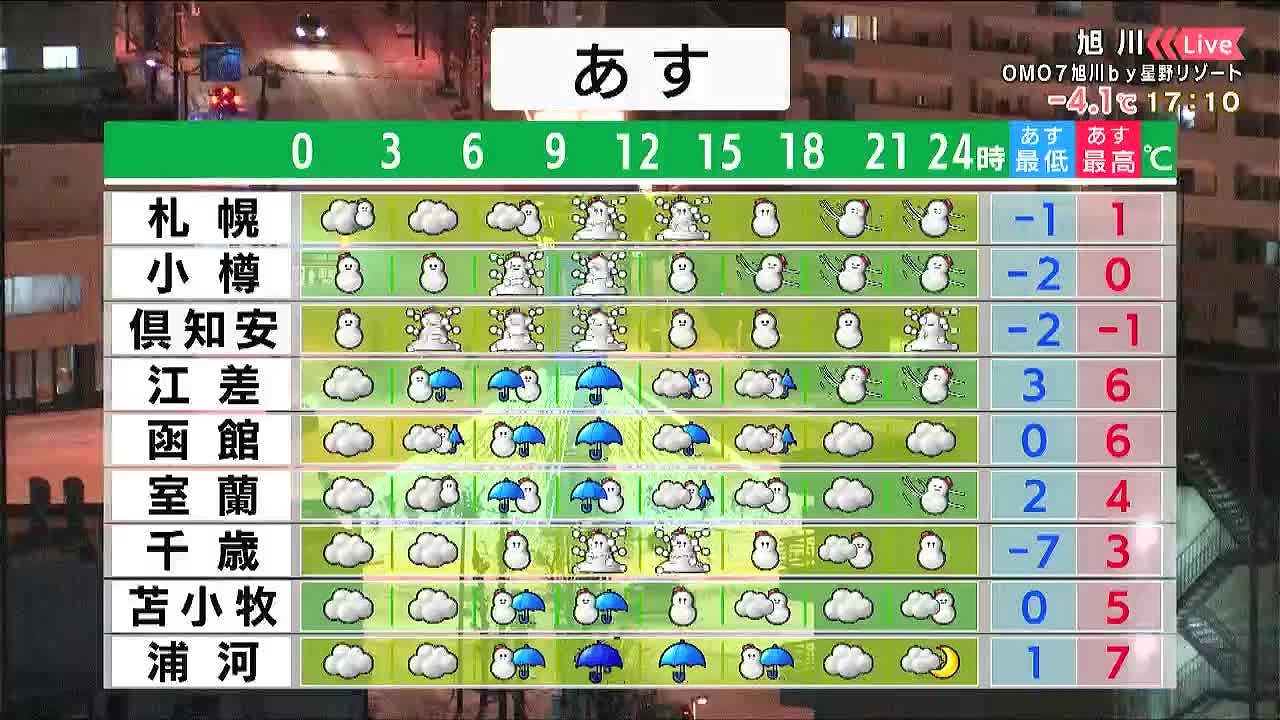 ・あすの札幌の朝昼晩の天気