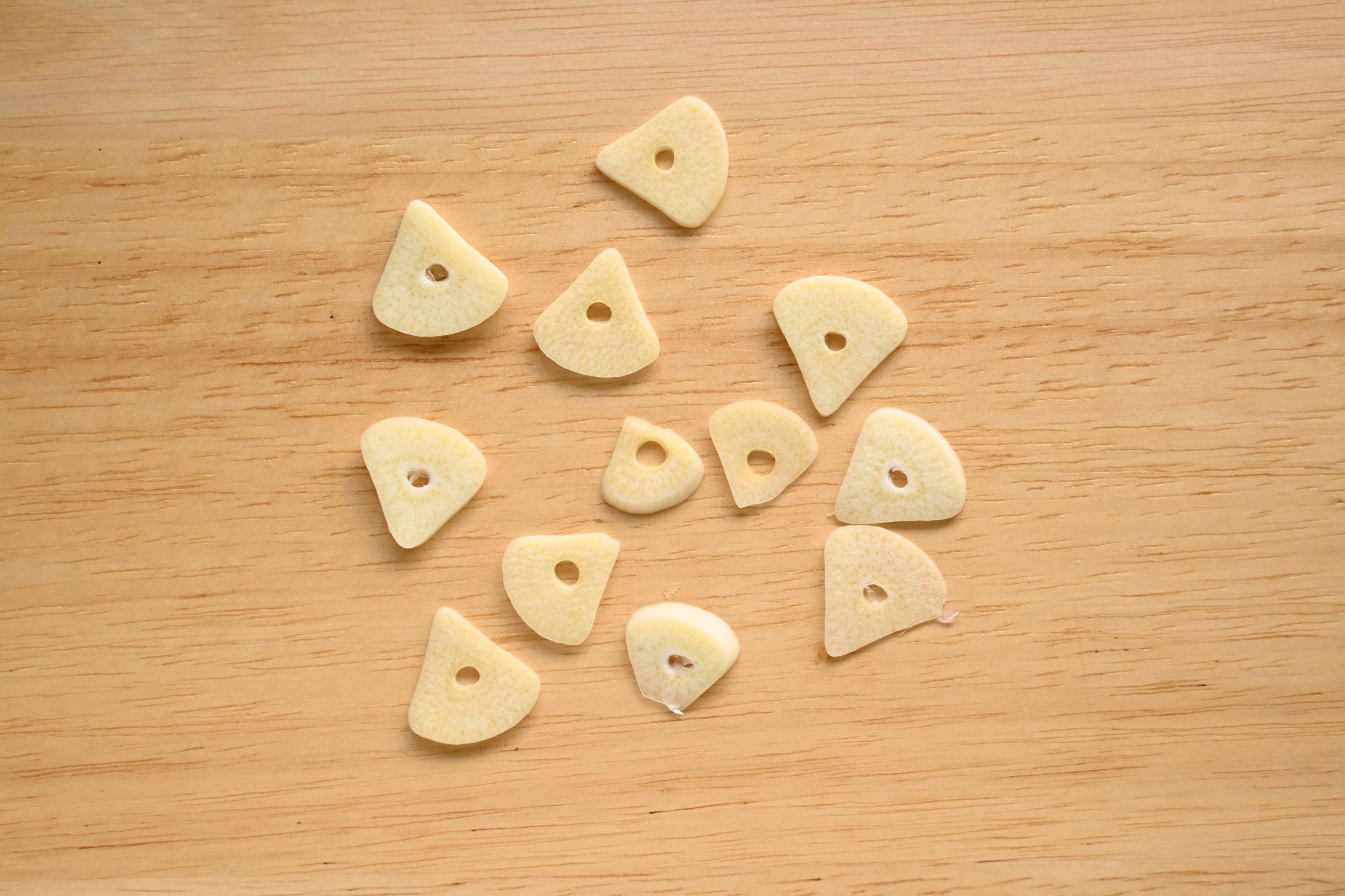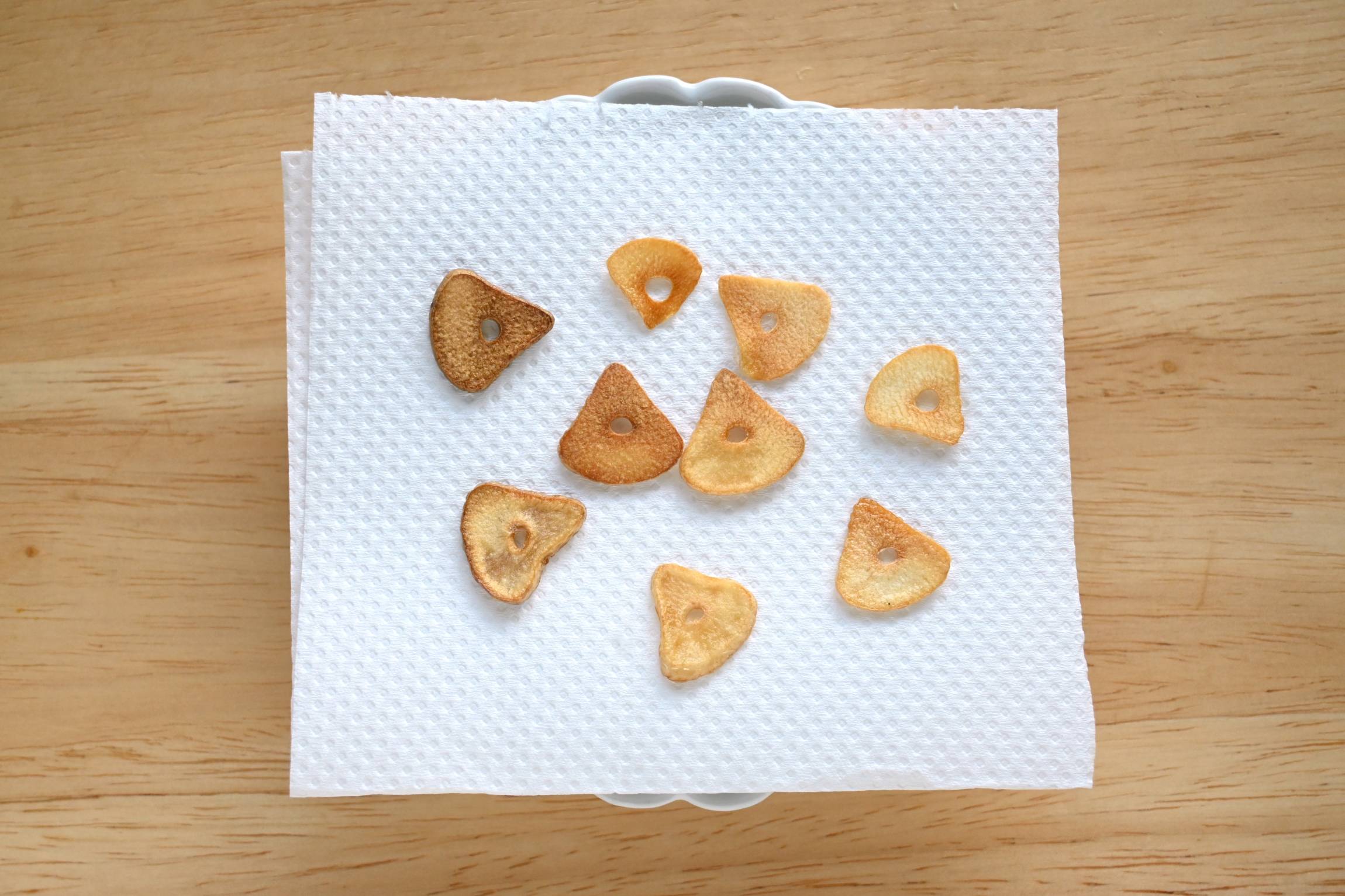 にんにくの香りが移った油はフライパンに残し、にんにくはキッチンペーパーに取ります。