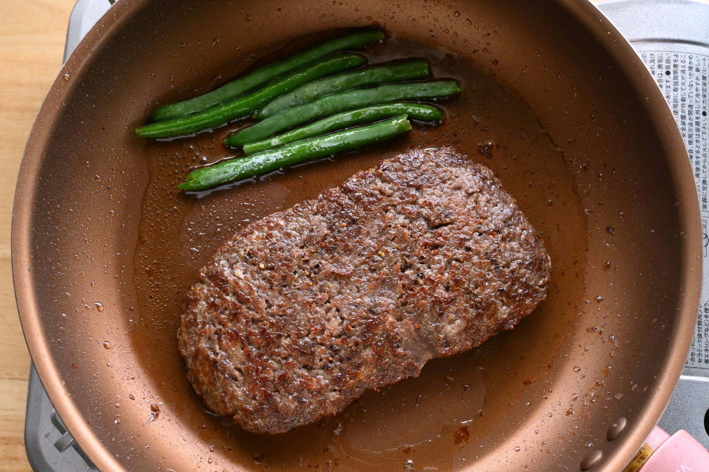 混ぜずにドン!パックから焼くだけ「ひき肉ステーキ」の作り方
