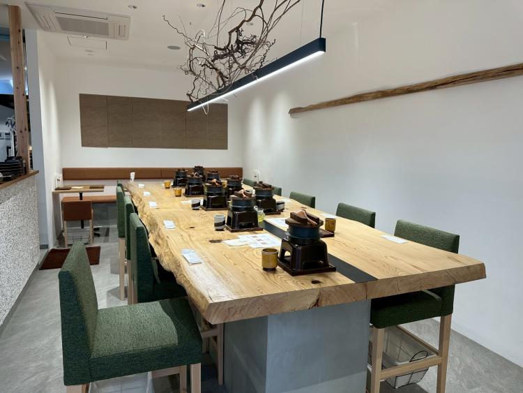 店内に足を踏み入れると、まず目に飛び込んでくるのは立派な一枚板の大テーブル。