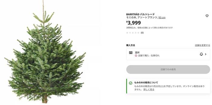 ホンモノのクリスマスツリー作れちゃう!『IKEA立川』で生のモミの木売ってる