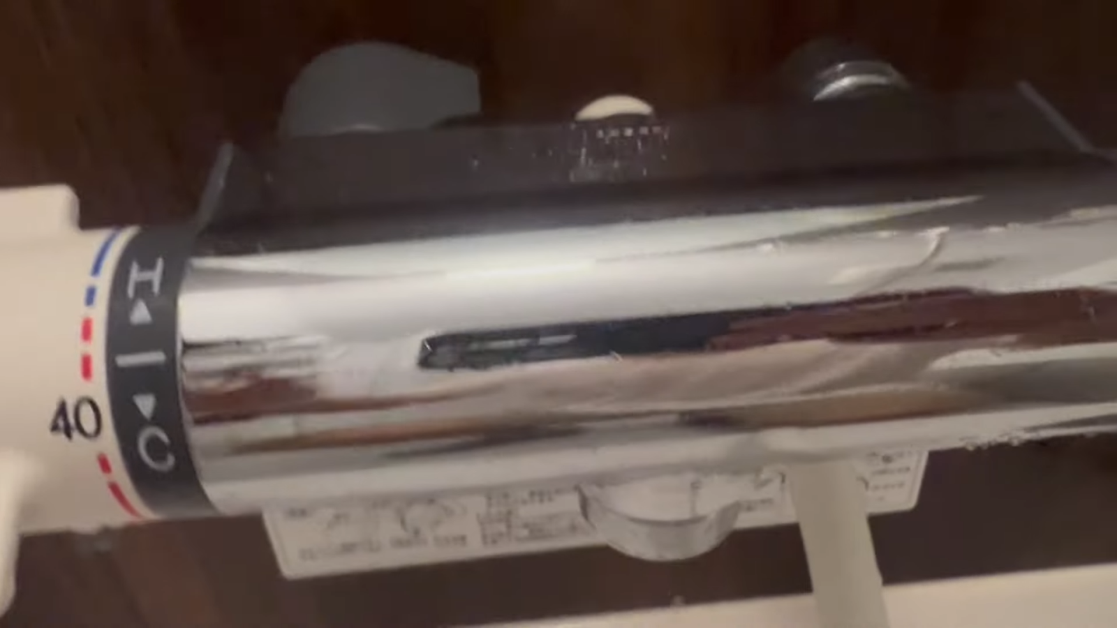 浴室の気になる水あか、なかなか落とすのが大変ですよね。今回は、このシートを使って、水だけでどれくらいきれいになるか試してみます。水をかけて、軽くなでるように優しくこすってみると……。