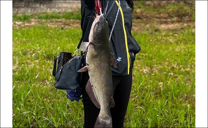 特に夕マヅメから夜にかけての時間帯が狙い目です。当日の釣りでは最大60cm超えの大型アメリカナマズも釣れました(釣ったのは妻ですが)。最大80cm10キロ近くの大物も狙えます。