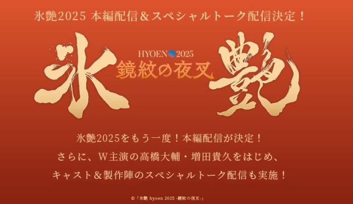 今年7月に上演された高橋大輔、増田貴久ダブル主演のアイスショー『氷艶 hyoen 2025 -鏡紋の夜叉-』公演および出演者らによるスペシャルトークが、11月21日(金)からStreaming+で配信される。