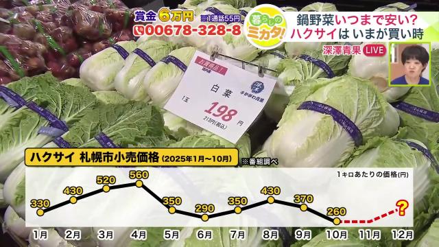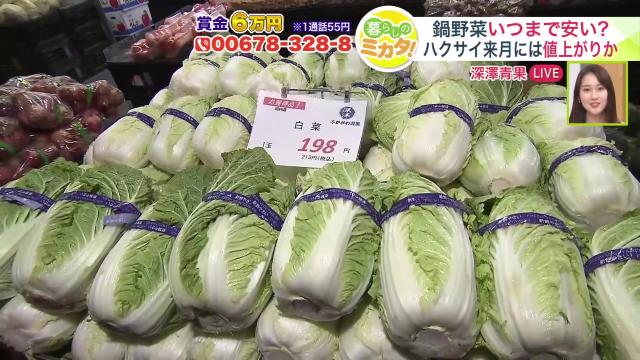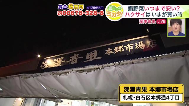 札幌市内を中心に6店舗を展開する「深澤青果」。新鮮でお得な野菜がたくさんあります。今は鍋料理にも大活躍のハクサイが買い時。今回は深澤青果本郷市場店で深澤栄治社長に、ハクサイやキャベツ、レタスなど葉物野菜やキノコ類の価格が今後どうなるのか聞いてきましたよ。