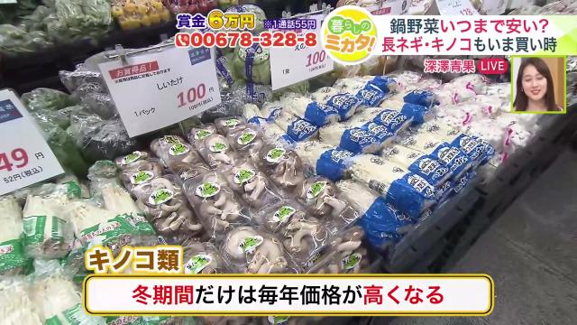 この日は、シイタケやシメジが1袋税込108円ほどでしたが、鍋の需要などもあって今後はどうしても高くなってしまうんですって。