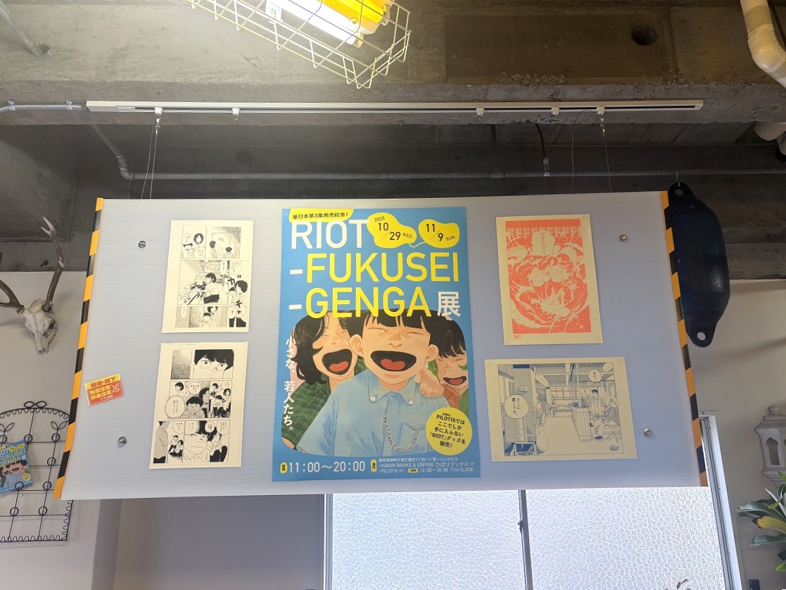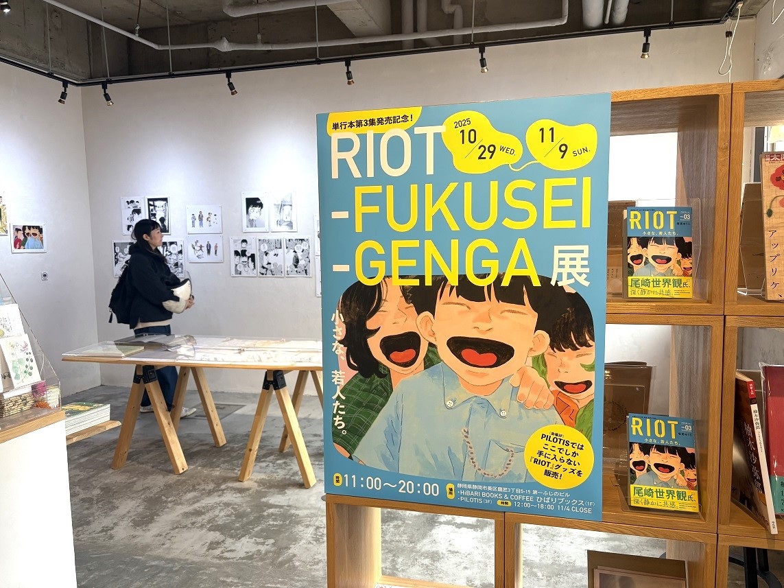 静岡新聞論説委員がお届けするアートやカルチャーに関するコラム。今回は静岡市葵区鷹匠の第一ふじのビルの1階にある書店「ひばりBOOKS」と3階の雑貨店「PILOTIS」で10月29日から開催中の漫画家塚田ゆうたさん(静岡県出身)「FUKUSEI-GENGA展」を題材に。展覧会は塚田さんの作品「RIOT」(小学館)の第3集発売記念として企画された。